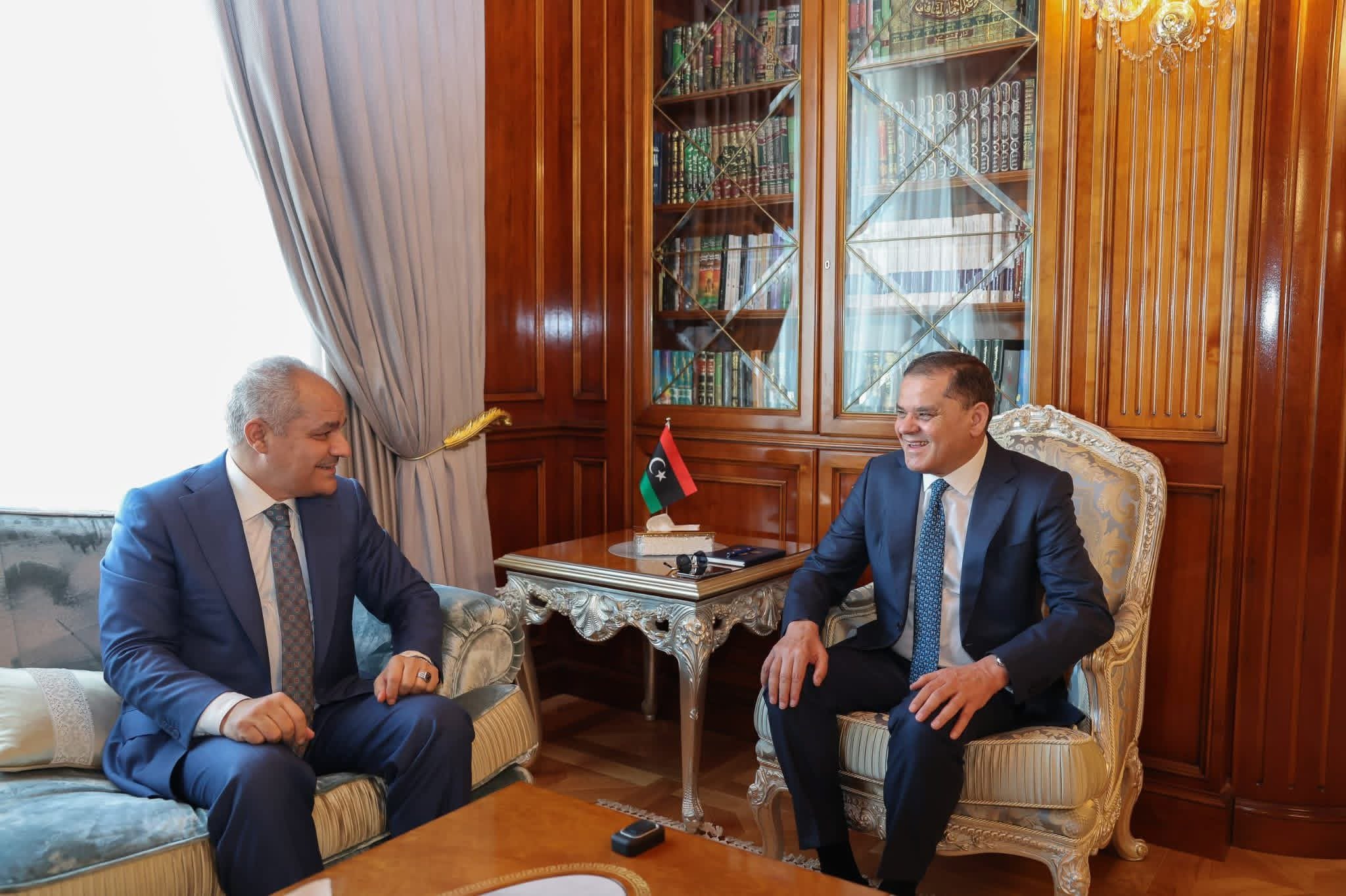 محافظ مصرف ليبيا المركزي السيد ناجي محمد عيسى يجتمع مع رئيس حكومة الوحدة الوطنية المهندس عبدالحميد الدبيبة بمقر رئاسة الوزراء ظهر اليوم الأربعاء 2025/12/17 وذلك لمتابعة الأوضاع المالية والجهود المبذولة لضمان توفير السيولة النقدية وتحسين مستوى الخدمات المصرفية.