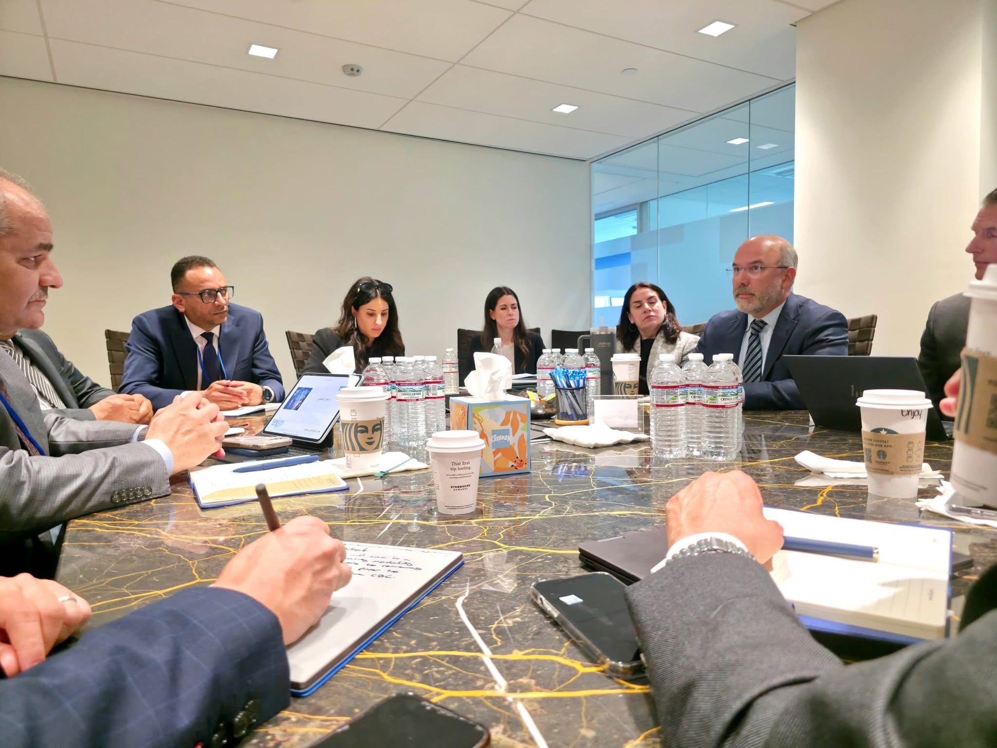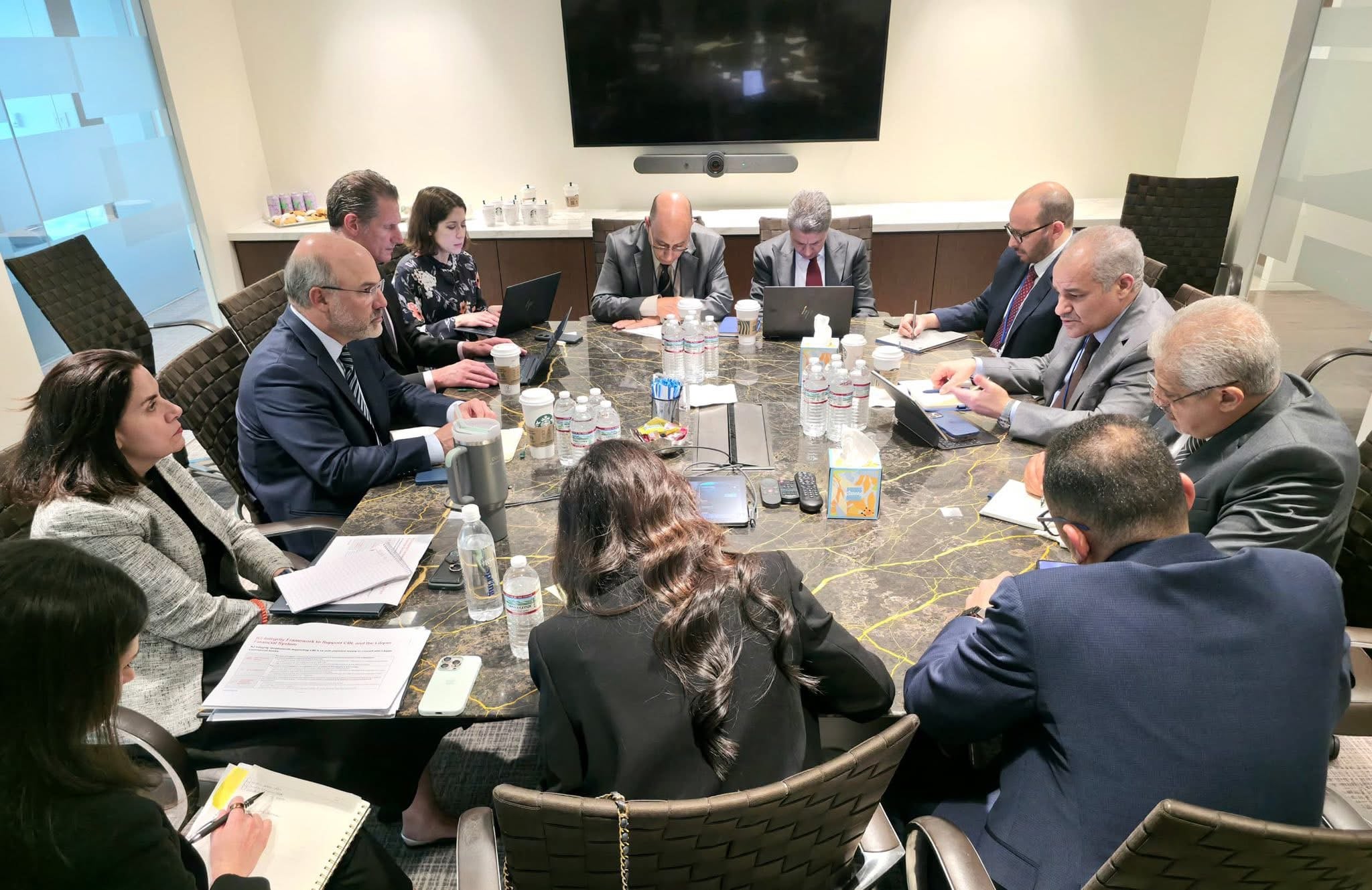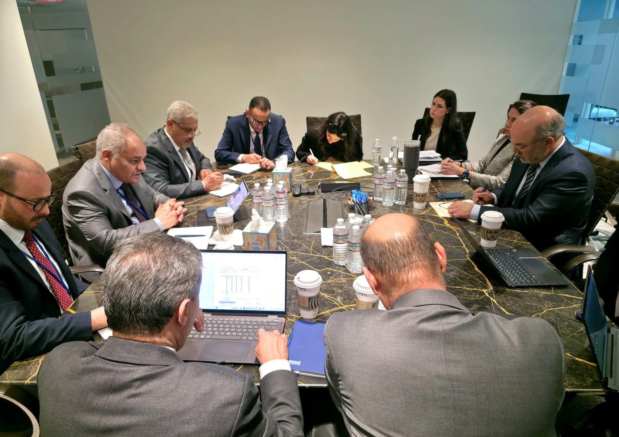 على هامش الإجتماعات السنوية لصندوق النقد والبنك الدوليين المنعقدة في العاصمة واشنطن خلال هذه الفترة، عقد السيد ناجي محمد عيسى، محافظ مصرف ليبيا المركزي، والوفد الفني والمصرفي المرافق له، صباح اليوم الثلاثاء 14 أبريل 2026، اجتماعاً موسعاً مع مسؤولي شركة “كي تو انتقرتي” المتخصصة في الاستشارات المالية وتقييم المخاطر.