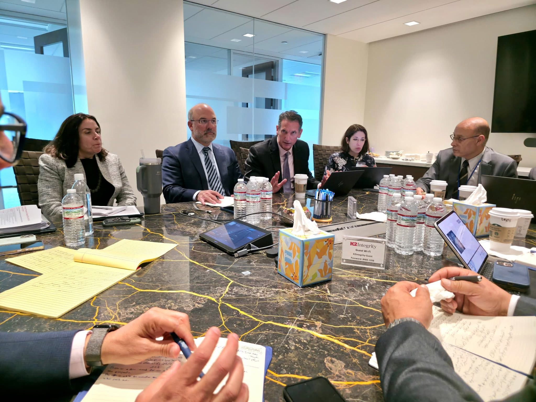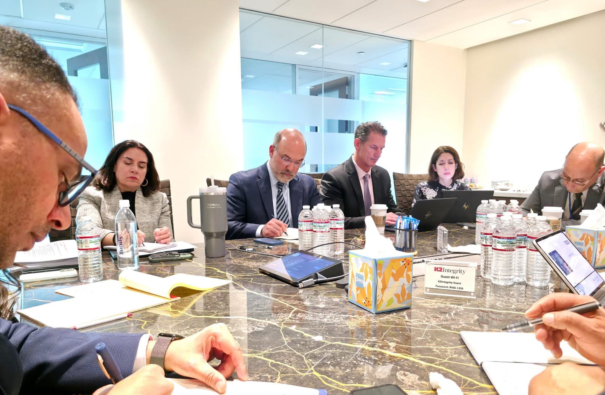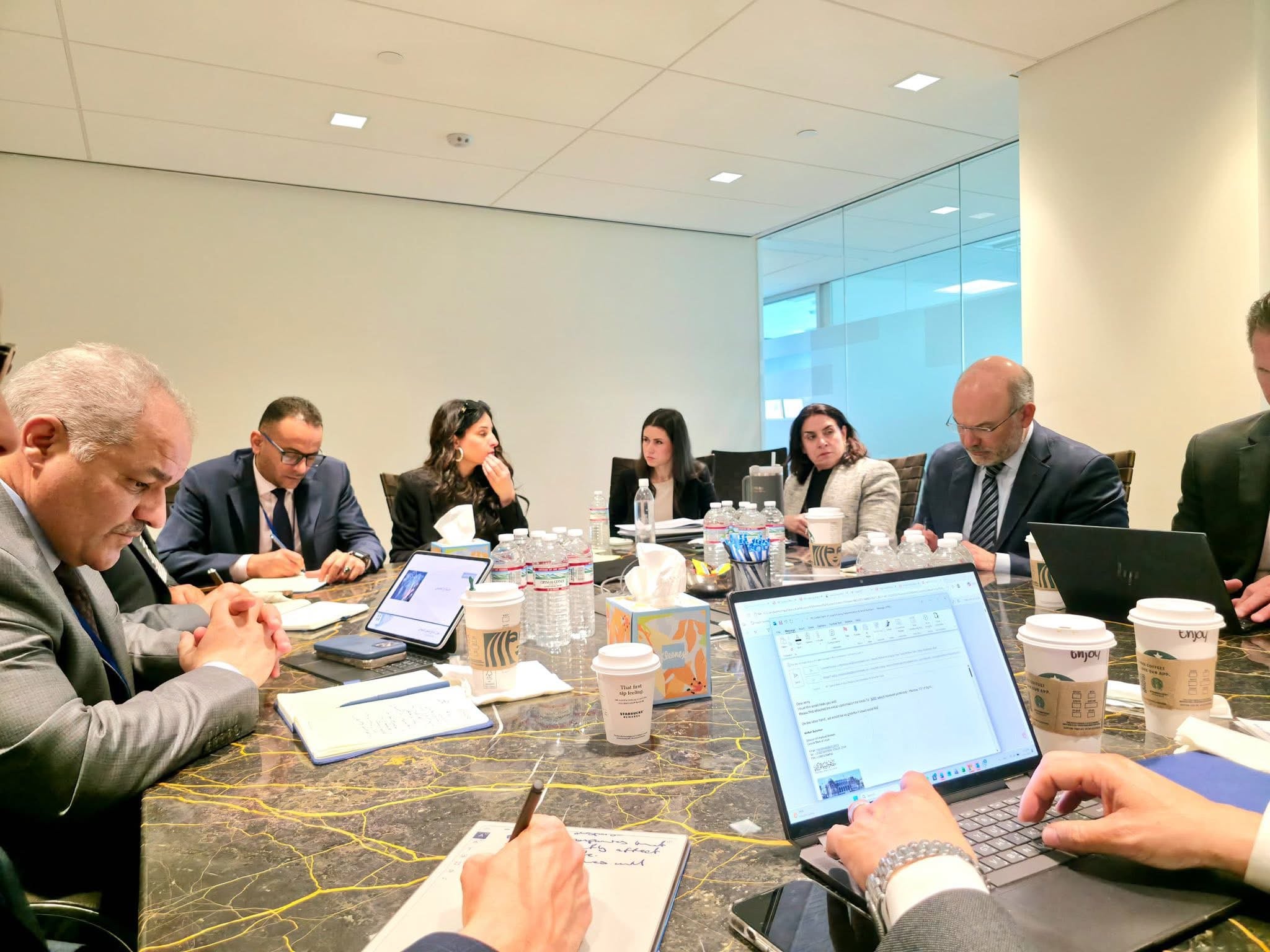 على هامش الإجتماعات السنوية لصندوق النقد والبنك الدوليين المنعقدة في العاصمة واشنطن خلال هذه الفترة، عقد السيد ناجي محمد عيسى، محافظ مصرف ليبيا المركزي، والوفد الفني والمصرفي المرافق له، صباح اليوم الثلاثاء 14 أبريل 2026، اجتماعاً موسعاً مع مسؤولي شركة “كي تو انتقرتي” المتخصصة في الاستشارات المالية وتقييم المخاطر.