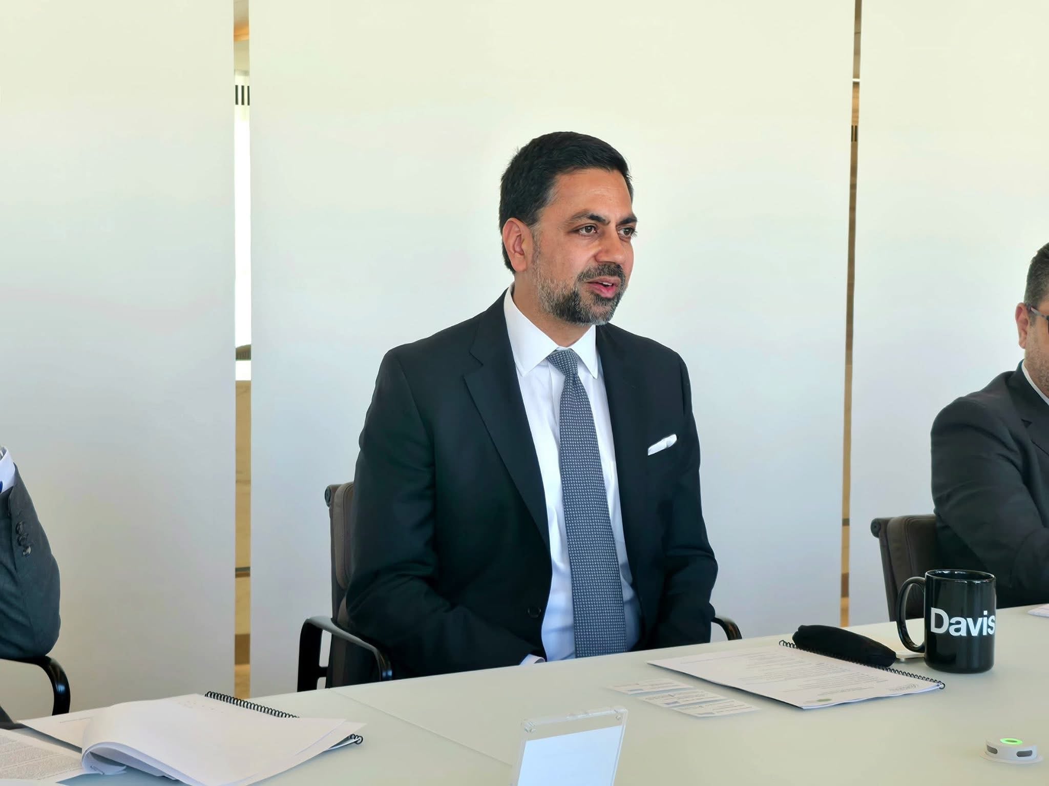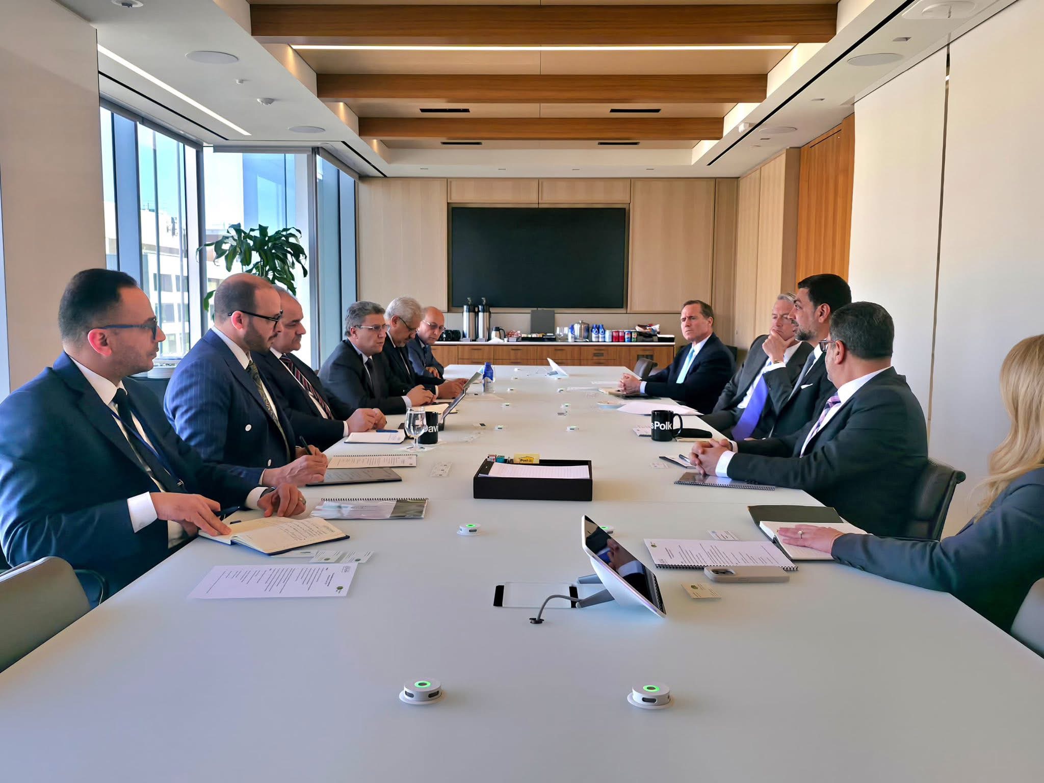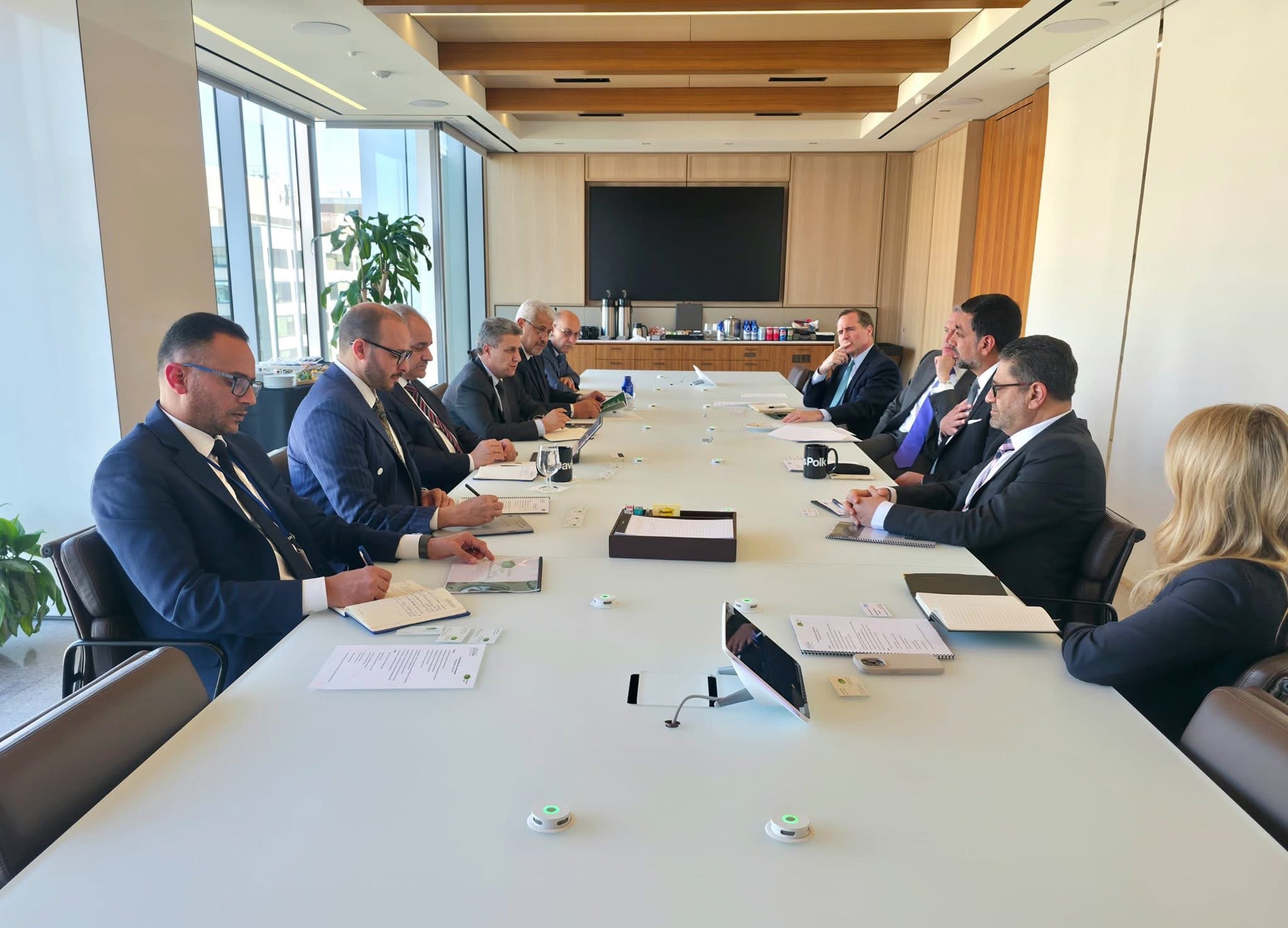 اجتمع السيد ناجي محمد عيسى، محافظ مصرف ليبيا المركزي، والوفد المرافق له، مساء اليوم الخميس الموافق 16 أبريل 2026، مع السيد فيفيك تياقي Vivek Tyagi، رئيس مجلس الإدارة والرئيس التنفيذي لبنك نوميسما (المتعاقد معه على توريد عملة الدولار)، والسيد راندال كوارليس Randal Quarles، عضو اللجنة الاستشارية للبنك ونائب رئيس مجلس الاحتياطي الفيدرالي الأمريكي الأسبق، إلى جانب الفريق المرافق لهما.