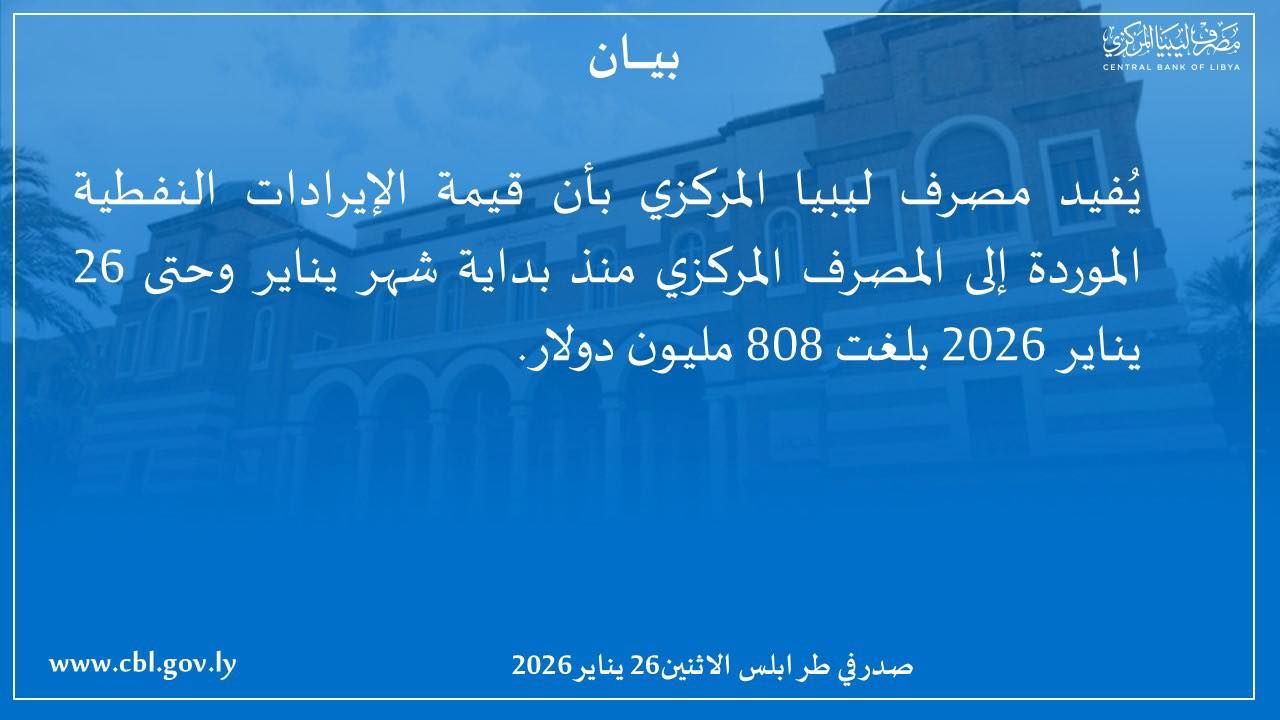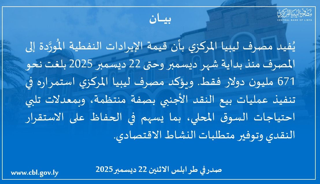 يَسُرُّ مصرف ليبيا المركزي أن يضع بين أيديكم بيانَهُ الشهري للإيراد والإنفاق العام، والّذي يُغَطّي الفترة المُمَتَدّة من 2025/01/01 حتى 2025/06/30.