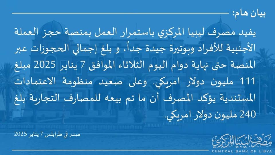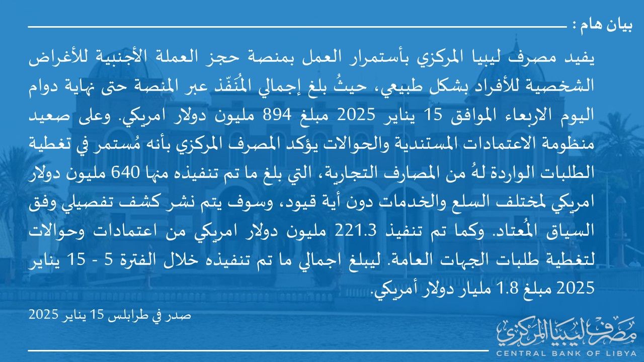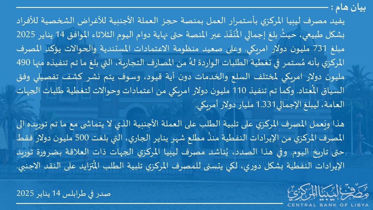 وللاطلاع على تفاصيل أكثر ضمن بيان مصرف ليبيا المركزي عن الإيراد والإنفاق يُمكِنُكُم النقر هنـــــــا.