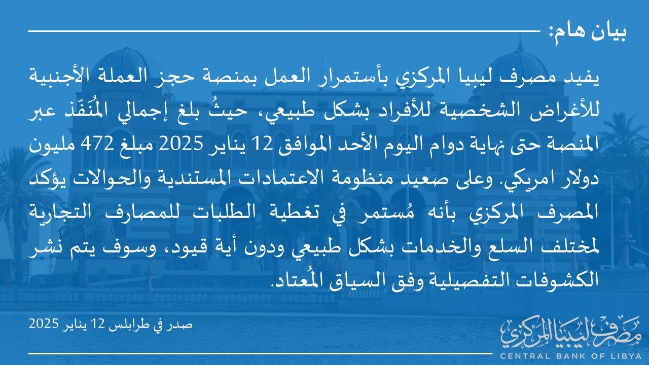 وبِهذه المُناسبة لازال مصرف ليبيا المركزي يؤكد على استمرار جُهودِهُ في تحقيق أعلى مُعدلات الإفصاح والشفافية عبر العديد من الأدوات المُتاحة، بغية إشراك كآفة مؤسسات الدولة والمواطنين في الوعي بواقع الدولة الاقتصادي والمالي.