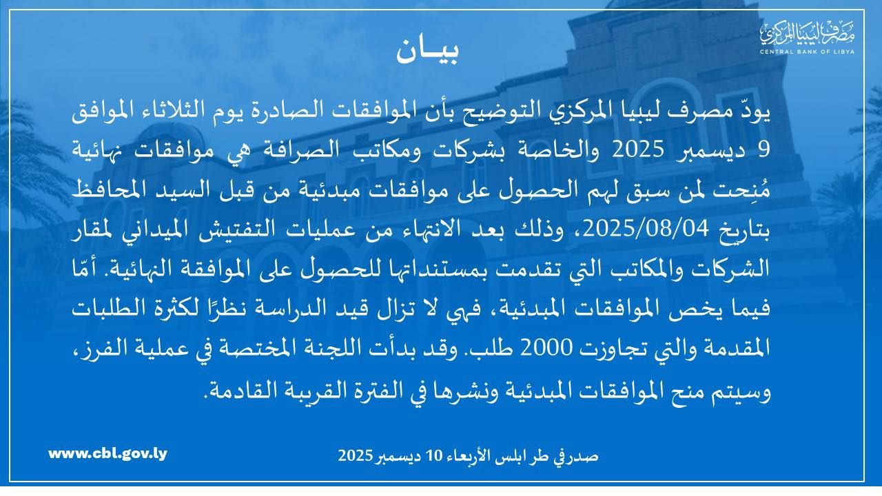 كما جرى بحث آليات ربط منظومات شركات الصرافة مع منظومة مصرف ليبيا المركزي بهدف متابعة العمليات والأنشطة التي ستنفذها الشركات بشكل لحظي، وتعزيز الشفافية والامتثال، والحد من أية ممارسات غير قانونية.