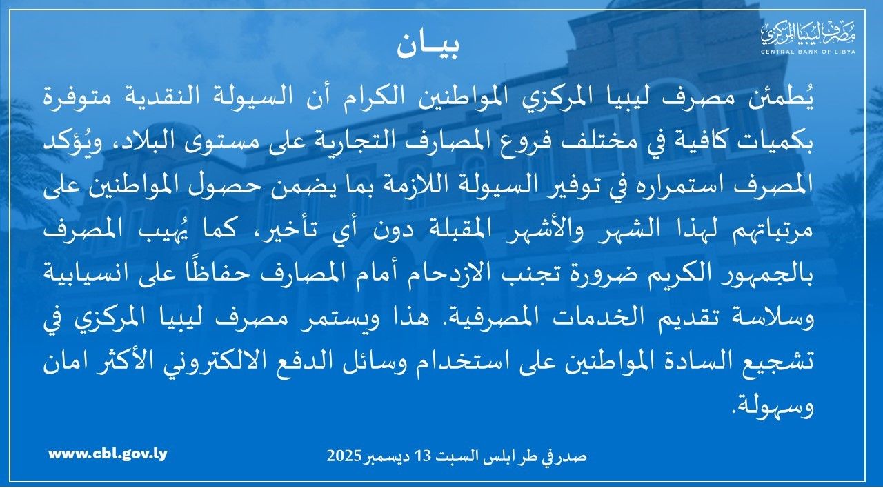 محافظ مصرف ليبيا المركزي السيد ناجي محمد عيسى يعقد بمكتبه اليوم الخميس 2024/12/18 اجتماعًا موسعًا بمشاركة نائب المحافظ السيد مرعي مفتاح البرعصي وبحضور الإدارات المختصة بالمصرف لبحث آليات تفعيل عمل شركات الصرافة وتنظيم نشاطها بما يتماشى مع القوانين والتعليمات النافذة.