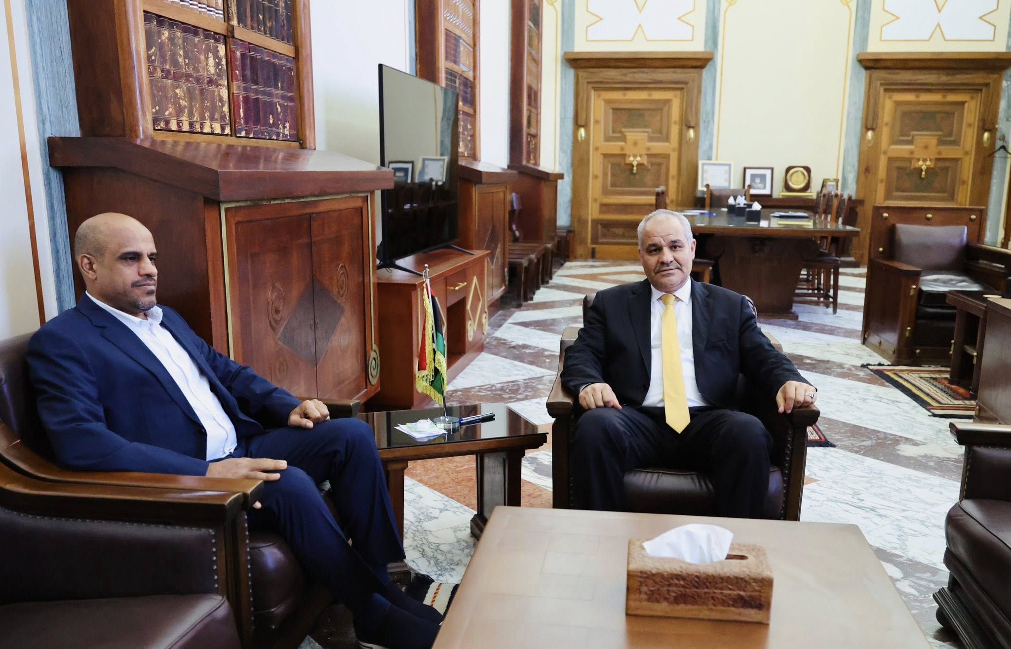 أتمتة القطاع الصحي وتفعيل التحول الرقمي على مستوى المؤسسات الطبية اهم محاور اجتماع السيد ناجي محمد عيسى محافظ مصرف ليبيا المركزي بمكتبه اليوم الأحد 3 اغسطس 2025 مع الدكتور محمد الغوج المكلف بمهام وزير الصحة.