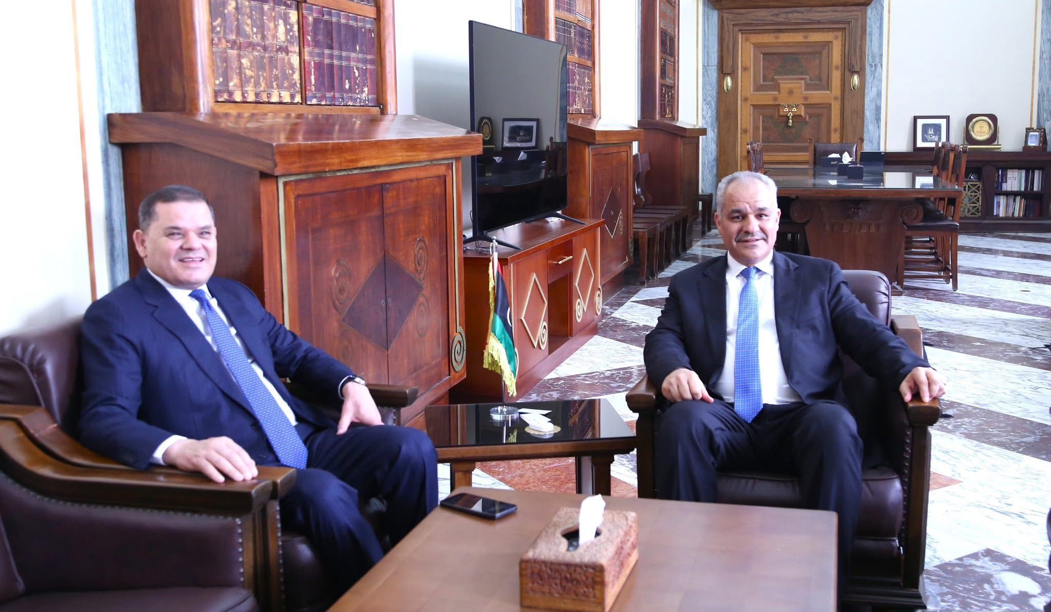 بحث محافظ مصرف ليبيا المركزي السيد ناجي محمد عيسى مع رئيس وزراء حكومة الوحدة الوطنية السيد م. عبد الحميد الدبيبة، خلال اجتماعهما اليوم الأربعاء الموافق 16 أبريل، تداعيات الإنفاق العام على الوضع الاقتصادي والمالي، وآثاره على قوة الدينار الليبي.