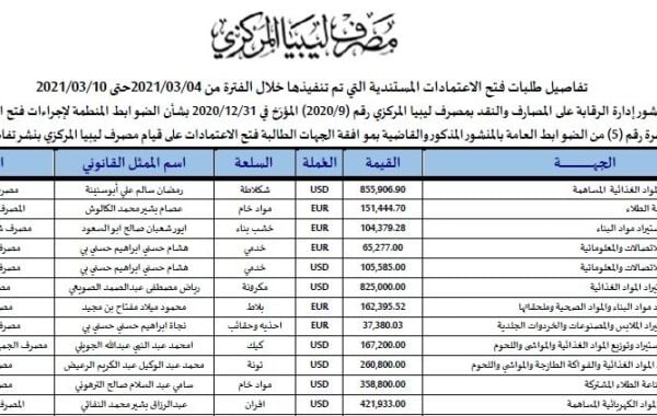 تفاصيل طلبات فتح الإعتمادات المستندية التي تمّ تنفيذها خلال الفترة من 28 أكتوبر حتى 3 نوفمبر 2021،،