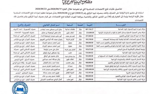 تفاصيل طلبات فتح الإعتمادات المستندية التي تمّ تنفيذها خلال الفترة من 26 أغسطس حتى 1 سبتمبر 2021