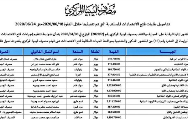 تفاصيل طلبات فتح الاعتمادات المستندية التي تمّ تنفيذها خلال الفترة من 24 يونيو حتى 7 يوليو 2021