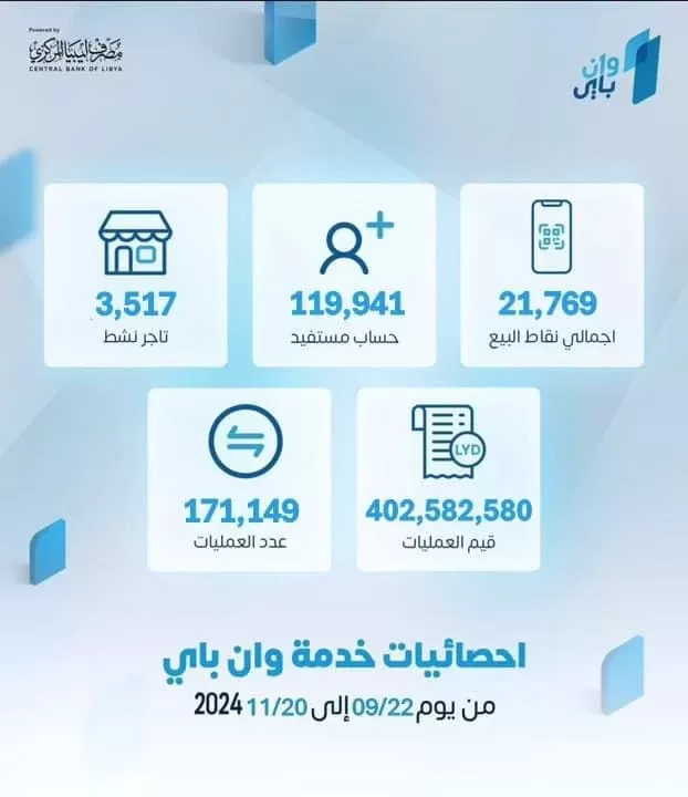 In implementation of the Central Bank of Libya's strategy to promote financial inclusion, and in line with the e-payment services development plan adopted by the Board of Directors at its first meeting. The Central Bank announces the latest statistics for instant payment services: LYPay and OnePay, which were recently launched.