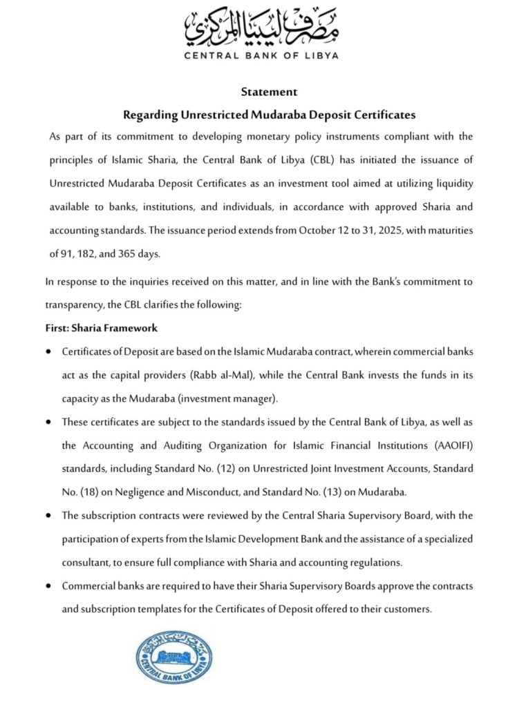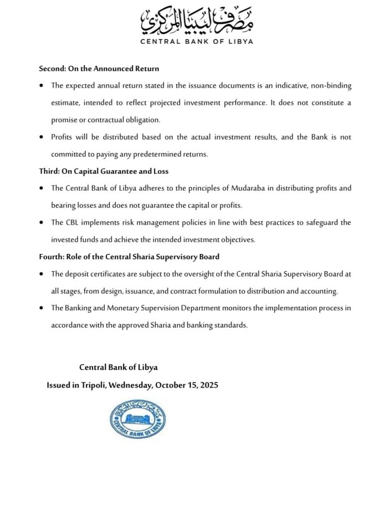 Clarification Statement Regarding Unrestricted Mudaraba Deposit Certificates