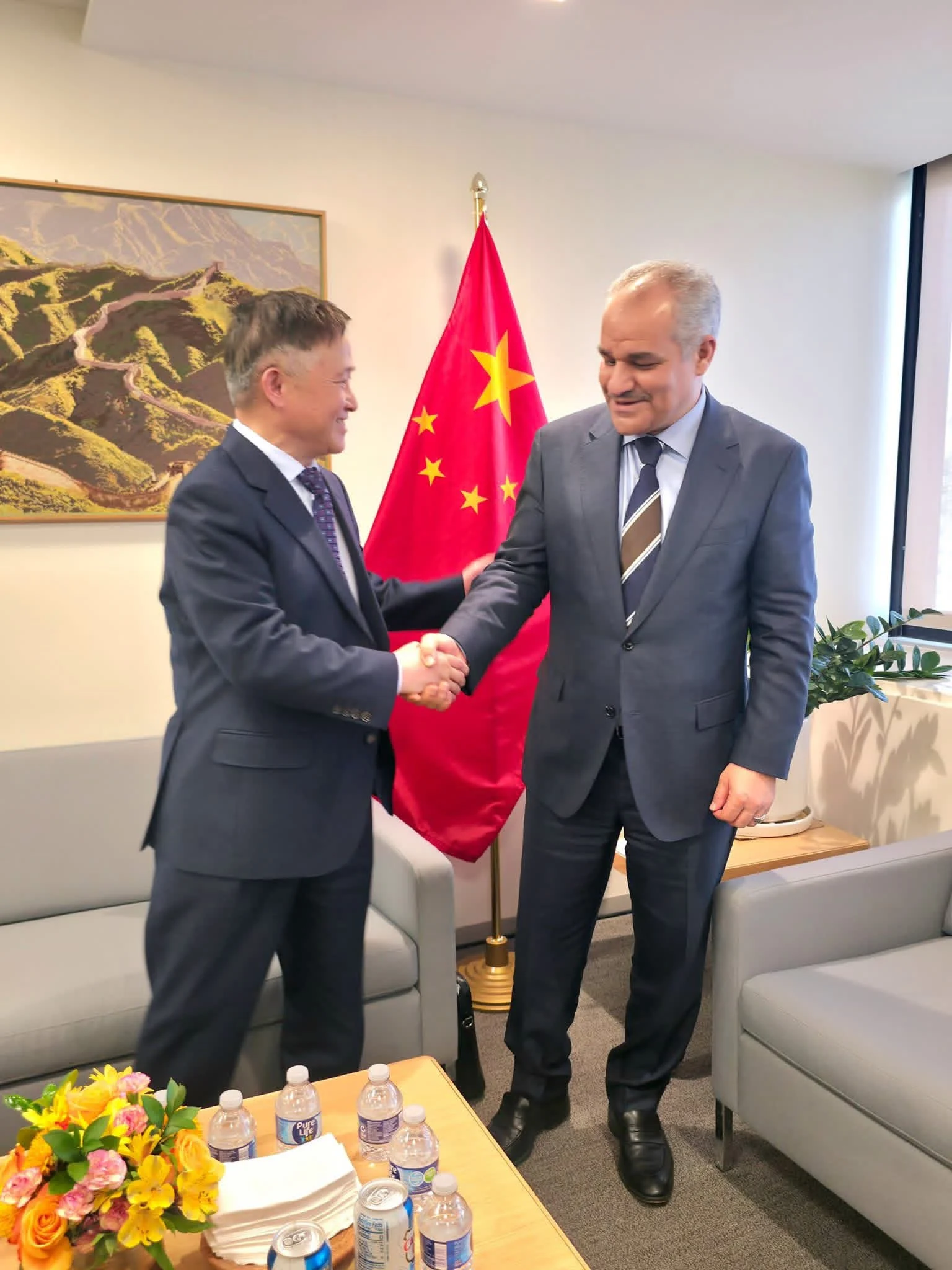H.E. Mr. Naji Mohammed Issa, Governor of the Central Bank of Libya, met on Friday, April 17, 2026, with Mr. Pan Gongsheng, Governor of the People's Bank of China. The meeting reviewed the volume of bilateral trade between the two countries and discussed ways to enhance it and increase its growth rate.