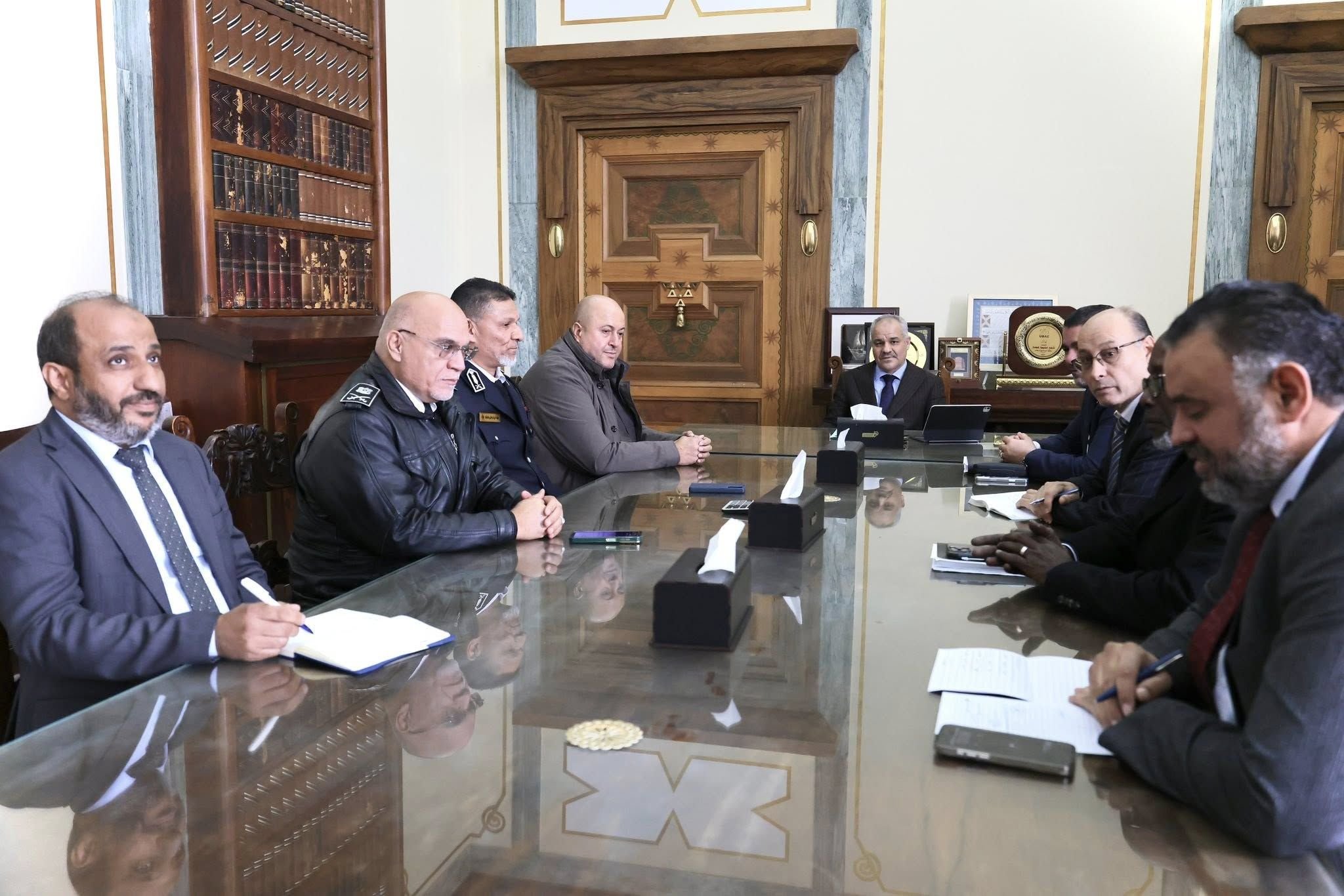 H.E. Naji Mohammed Issa, Governor of the Central Bank of Libya, met, with Major General Fawzi Ghaith, Head of the Facilities and Installations Security Authority, to discuss and review the key observations and challenges facing the Authority related to currency transportation operations between regions, in the presence of a number of relevant departments on Tuesday 16/12/2025.