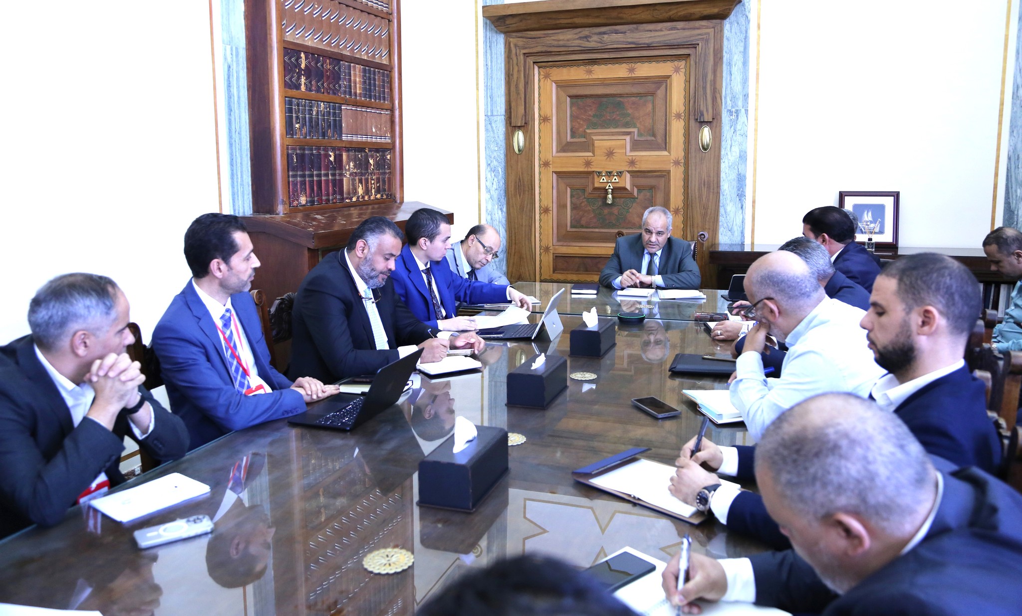 H.E Naji Mohammed Issa, Governor of the Central Bank of Libya, held a meeting with electronic payment companies and relevant departments of CBL to monitor the progress of bank's new strategy for enhancing electronic payment systems and infrastructure on Thursday, 7th of November, 2024. This strategy includes a short- and medium-term plan for electronic payments, the transfer of the national switch, issues related to smart cards, and increasing transaction limits.