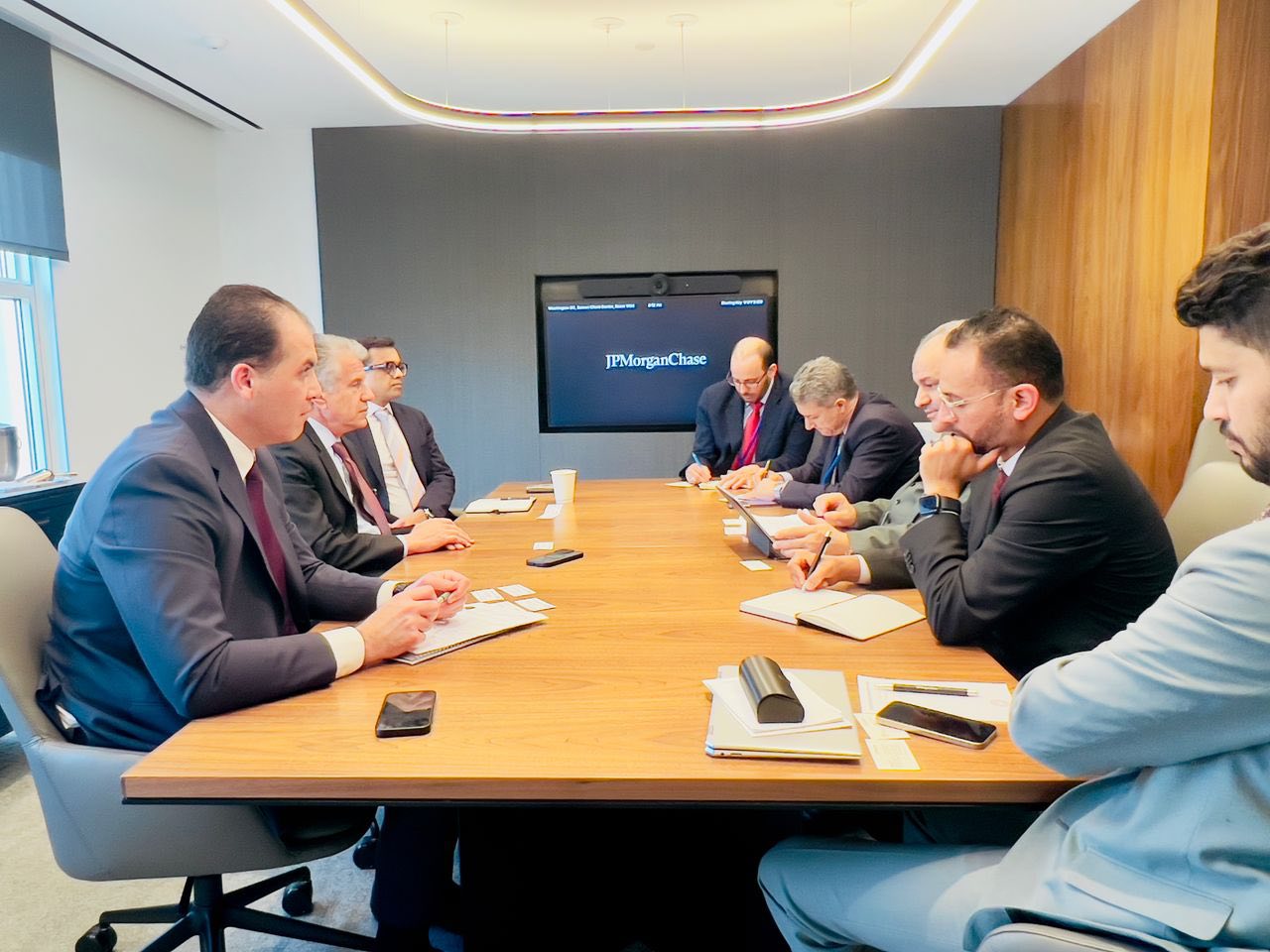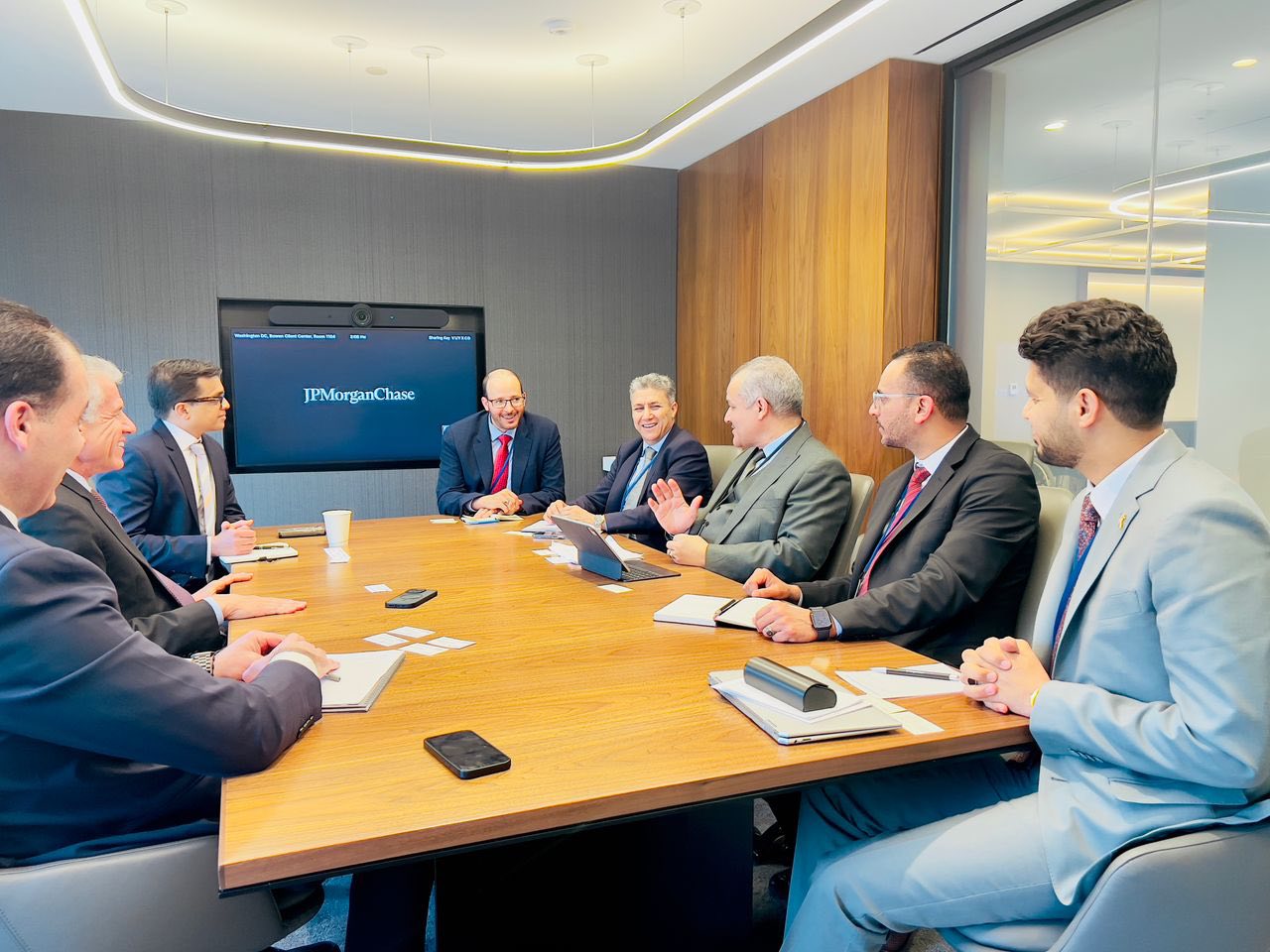 H.E. Naji Mohammed Issa, Governor of the Central Bank of Libya , and his accompanying delegation met with senior executives .The meeting included Mr. Daniel M. Zelikow, Vice Chairman, Mr. Georges Al Achkar, Executive Director and Head of Public Sector for the Middle East and North Africa, and Mr. Rahul Shah, Managing Director of Global Financing Solutions on Tuesday, April 22, 2025 at J.P. Morgan in Washington, D.C.