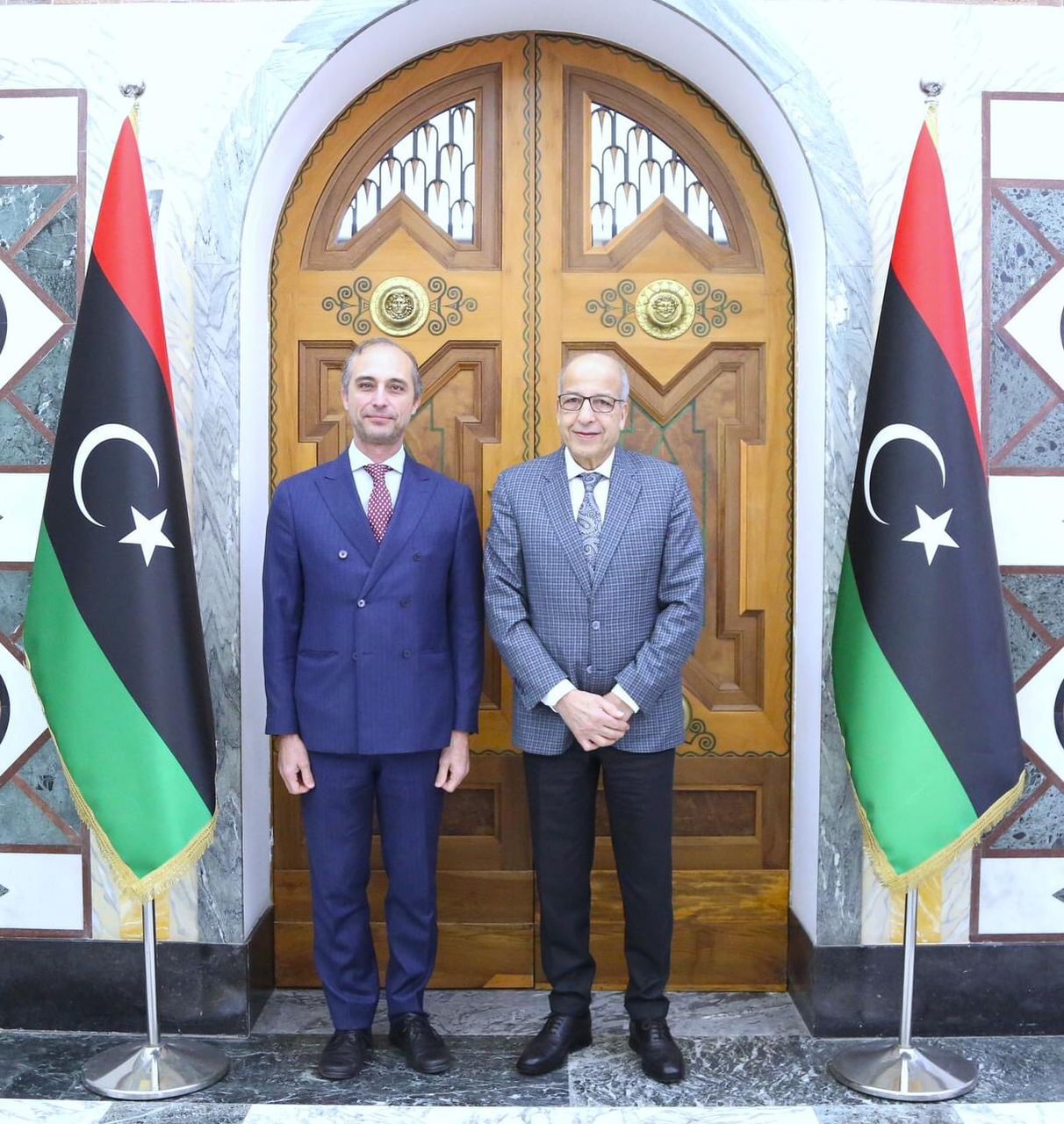 Governor of the Central Bank of Libya meets with Gianluca Alberini the Ambassador of Italy to Libya.