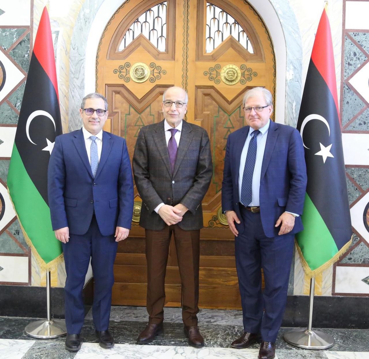 H.E Mr. Saddek Omar ElKaber, the Governor of the Central Bank of Libya, met with Mr. Richard Norland, the U.S. Special Envoy to Libya, and Mr. Jeremy Berndt, the Chargé d’Affaires at the U.S. Embassy on tuesday 5th of march,2024. The meeting covered several important topics, including efforts in collaboration with the parliamentary financial committee and other state institutions to prepare a unified budget law for the year 2024. Additionally, they reviewed the central bank unification efforts, the reasons behind the appreciation of hard currency in the parallel market, and the transparency and disclosure project adopted by the Central Bank of Libya. Furthermore, they discussed the crucial measures the central bank will take to safeguard the country’s financial sustainability and enhance the value of the Libyan dinar.