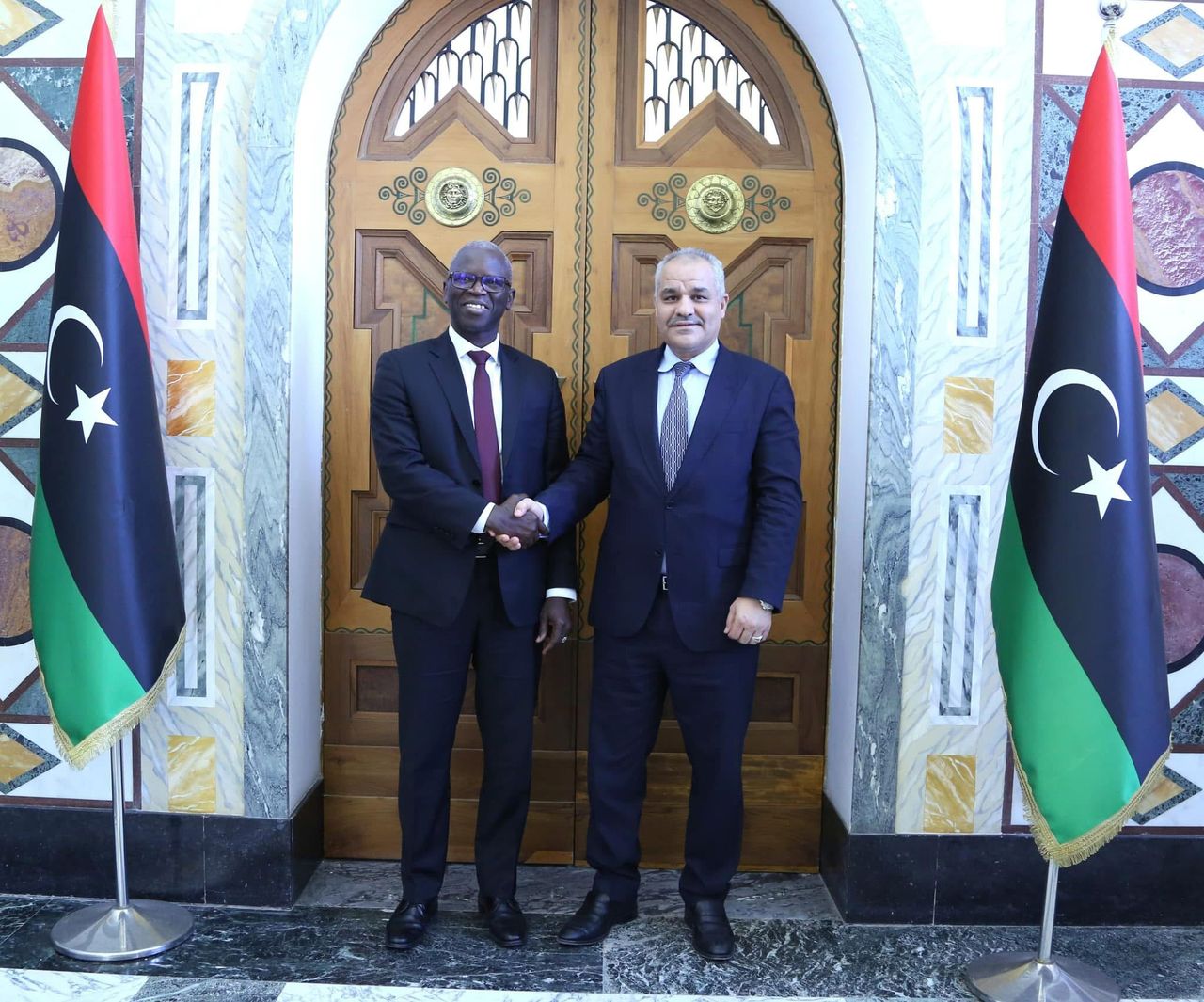 On Wednesday, February 19, 2025, H.E. Naji Mohammed Issa, Governor of the Central Bank of Libya, held a meeting with Mr. Ousmane Dione, Vice President of the World Bank Group for the Middle East and North Africa, accompanied by his delegation.